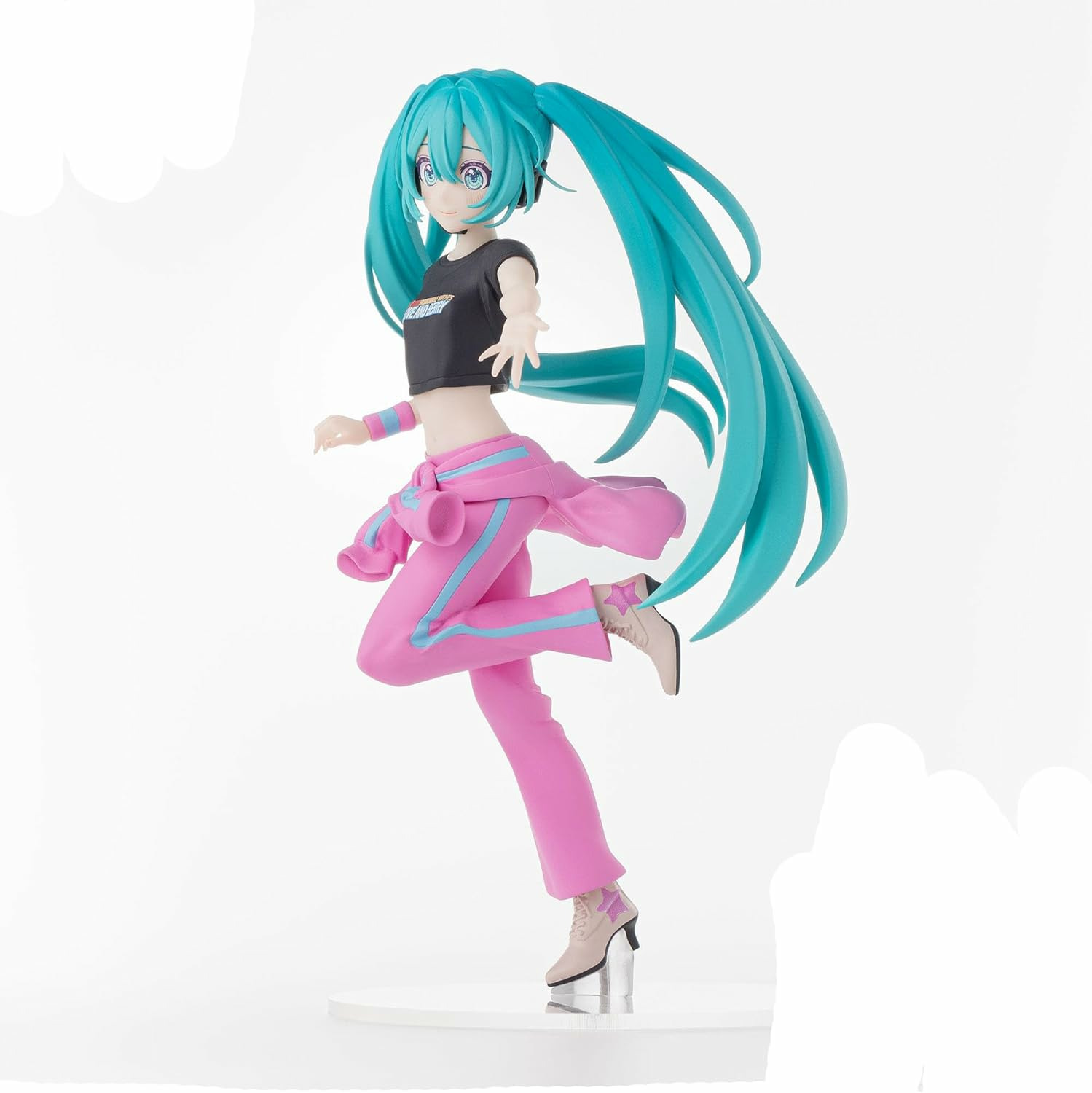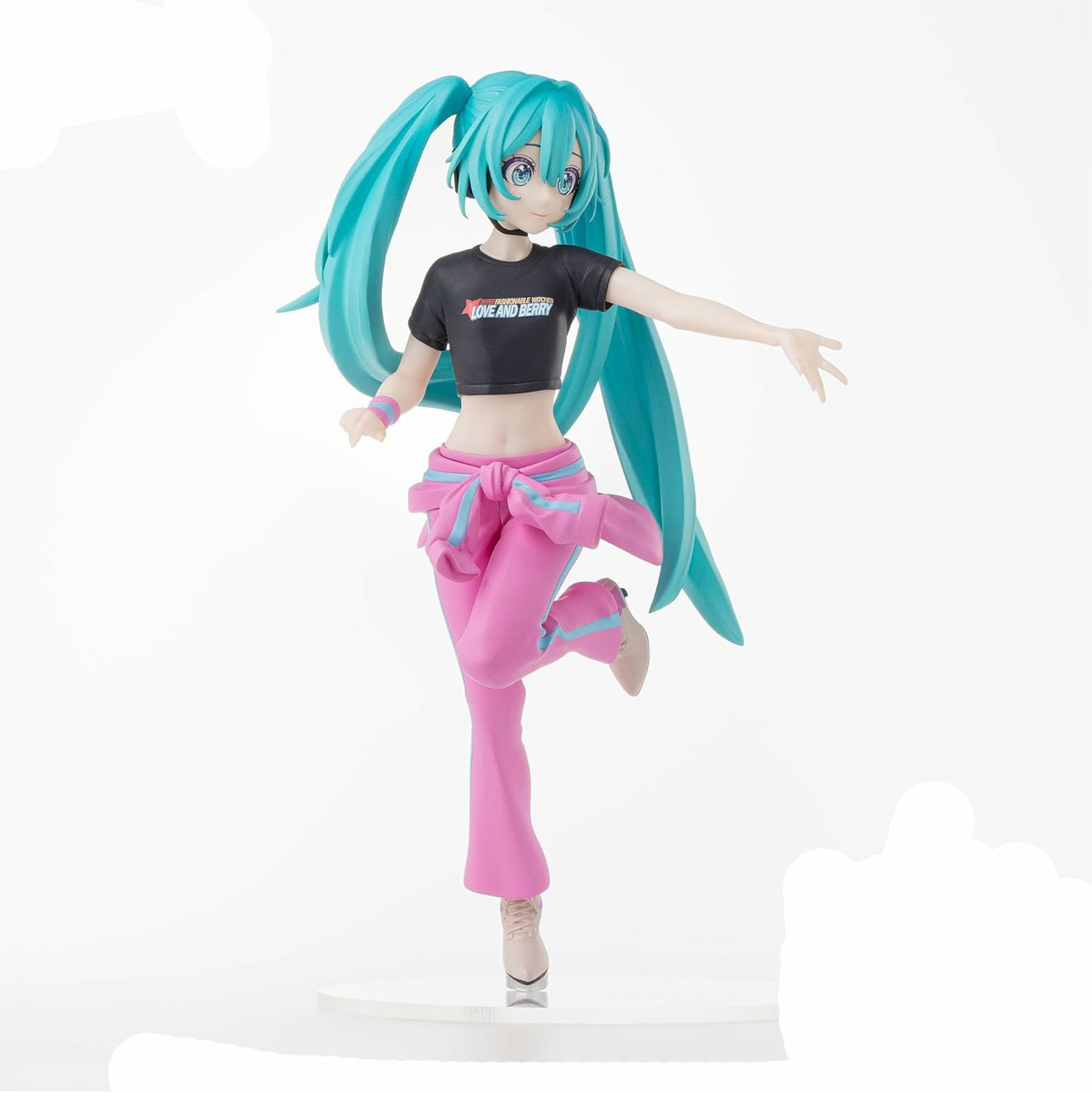Découvrez la figurine HATSUNE MIKU - DESKTOP X DECORATE FIGURE - HATSUNE MIKU BERRY COSTUME Ver., fabriquée par SEGA. Cette pièce de collection présente Hatsune Miku dans une tenue vive et stylée, comprenant un pantalon rose vif avec des bandes bleues, un haut court noir arborant un logo, et une veste rose nouée autour de la taille. Les détails soignés, tels que ses longs cheveux turquoise et sa pose énergique, capturent parfaitement l'esprit dynamique et joyeux du personnage. Mesurant environ 17 cm de hauteur, cette figurine en PVC et ABS est idéale pour décorer votre bureau ou votre étagère. Un ajout parfait pour tous les fans de Hatsune Miku
