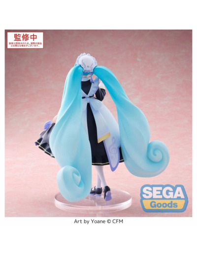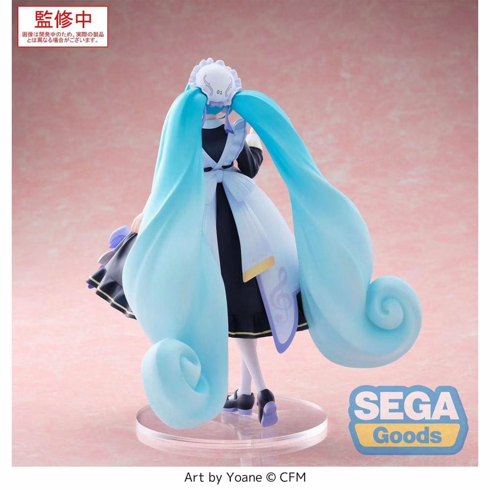 Cette figurine, produite par la célèbre marque SEGA, met en avant le charme intemporel de Miku dans un costume de maid classique. La finesse des détails et les couleurs vibrantes donnent vie à cette représentation, faisant d'elle un objet de collection incontournable pour les fans d’animation et de culture japonaise.