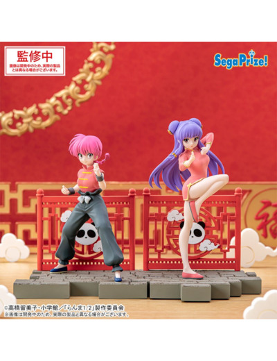 Découvrez la figurine RANMA 1/2 - LUMINASTA FIGURE - SAOTOME RANMA GIRL Ver., fabriquée par SEGA. Cette pièce de collection exceptionnelle représente Ranma Saotome dans sa version féminine, vêtue d'un costume traditionnel chinois avec un haut rouge et un pantalon noir ample. La figurine est minutieusement détaillée, capturant parfaitement l'essence du personnage avec ses cheveux roses et sa posture dynamique de combat. Elle est posée sur une base décorative qui rappelle l'univers de la série, avec des motifs chinois et des nuages stylisés. Cette figurine est un must pour les fans de Ranma 1/2 et les collectionneurs de produits dérivés de haute qualité.