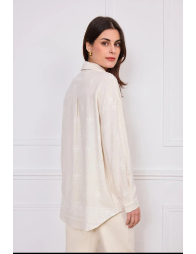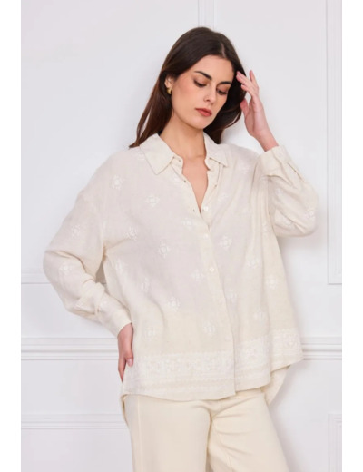Découvrez la chemise Léonora de la marque Sunny, un haut élégant et intemporel qui s'intégrera facilement dans votre garde-robe. Fabriquée en viscose de qualité, cette chemise ecru se distingue par son magnifique motif brodé qui apporte une touche unique à votre style.
