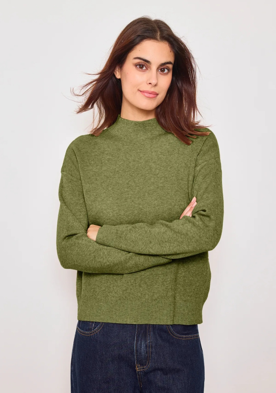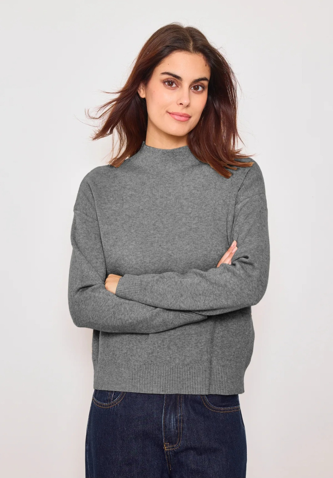 Le pull Eva arbore un col montant qui offre une protection optimale contre le froid tout en ajoutant une touche de sophistication à votre look. Sa taille unique s'adapte à différentes morphologies, ce qui en fait une pièce polyvalente. Que ce soit pour une sortie décontractée ou une journée au bureau, ce pull se marie facilement avec d'autres vêtements.