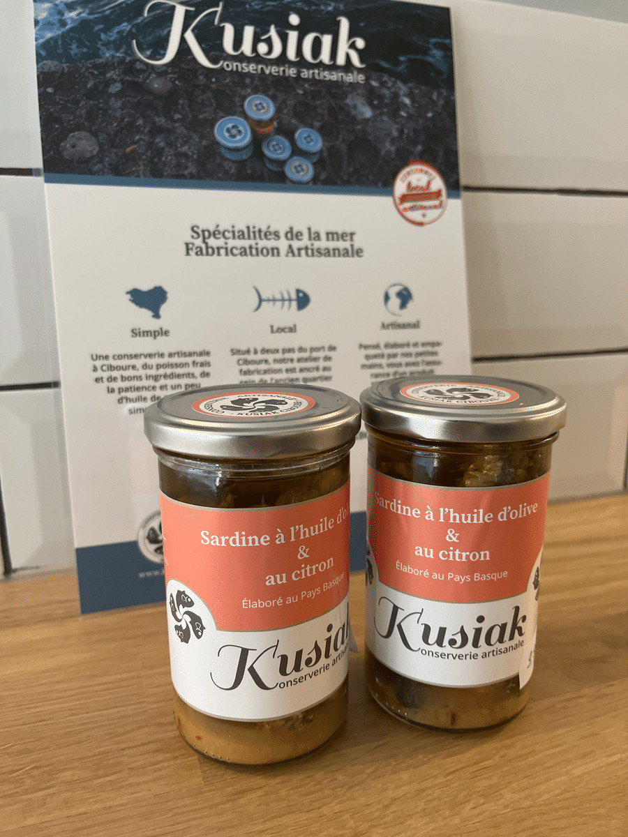 Sardines 70% (Sardina Pilchardus) huile d’olive vierge extra* 25%, sel, citron 1,2%, aromates, épices.