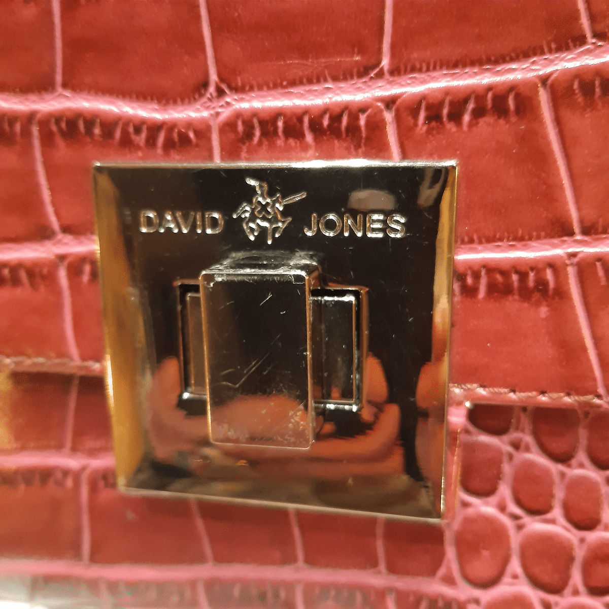 Pochette de marque David Jones en cuir synthétique , couleur framboise2 soufflets intérieurs, doublés de tissu fleuri