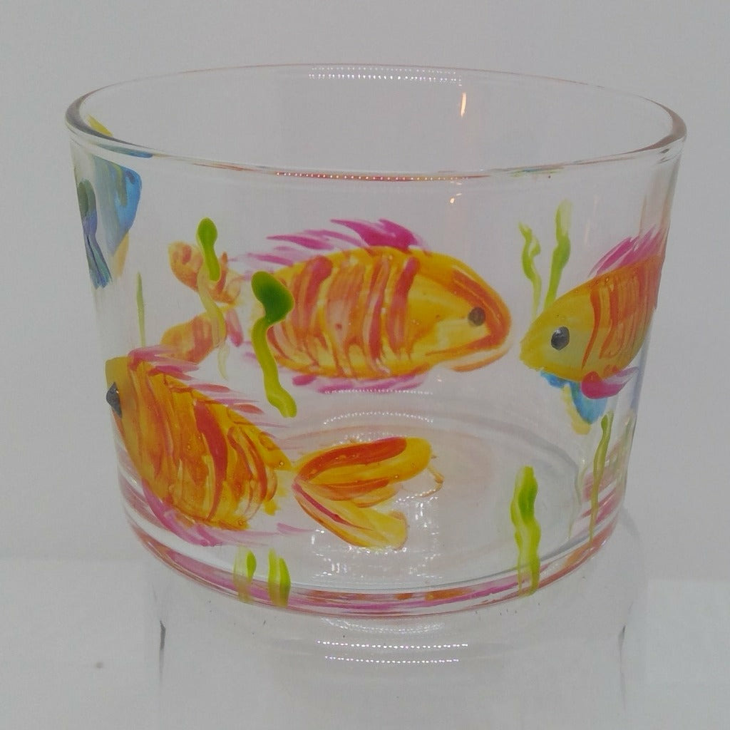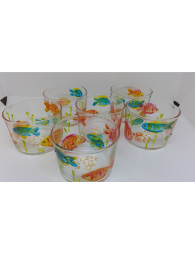 Série de 6 verres à bodega peints main aux motifs de petits poissons.