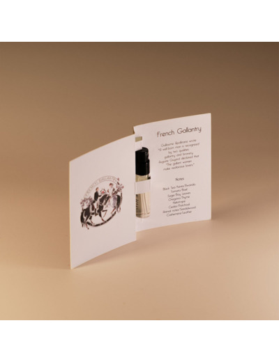 La fraîcheur vigoureuse de la tomate et du basilic se pose sur les notes intenses de Laurier, d‘Origan, de Thym. L’association subtile du Thé noir de Kenya et de la Sauge offrent un sillage sensuel. Le tout est relevé de Bois ambrés et fumés. Le parfum French Gallantry révèle et souligne le charisme, la force et l’élégance à la française de celui qui le porte.