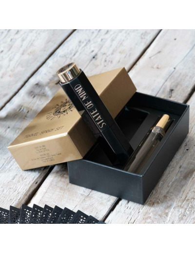 Il faut dire que le flacon 20ml laqué noir du parfum d’exception de la maison STATE OF MIND est octogonal. Il s’ouvre à la manière d’un rouge à lèvres. Son design ART DECO est sublimé par le logo de la maison, présent sur le capot.