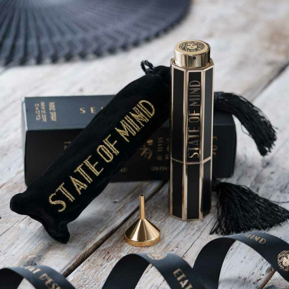 Le format 20 ml, aussi appelé PURSE SPRAY, est destiné à l’usage quotidien, à emporter dans un sac à main. Le flacon 20 ml du parfum d’exception SPONTANEOUS GENEROSITY de la maison STATE OF MIND est un flacon octogonal qui s’ouvre à la manière d’un rouge à lèvres. Son design noir doré et luxueux, dans le style ART DECO, est sublimé par le logo de la Maison STATE OF MIND, présent sur le capot. Vous pourrez retrouver la fragrance SPONTANEOUS GENEROSITY en formats de 100 ml, 40 ml et 10 ml, ainsi que sous forme d’échantillons.