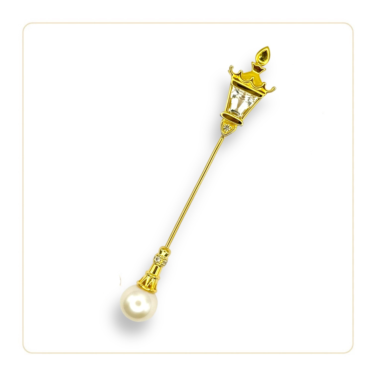 Chaque pièce est incrustée d'un morceau de la pointe du lampadaire des Champs-Élysées, une collection exceptionnelle en édition limitée.Or 1carat et plaqué or, Cristal de Roche, Saphir , Diamand, Perle .