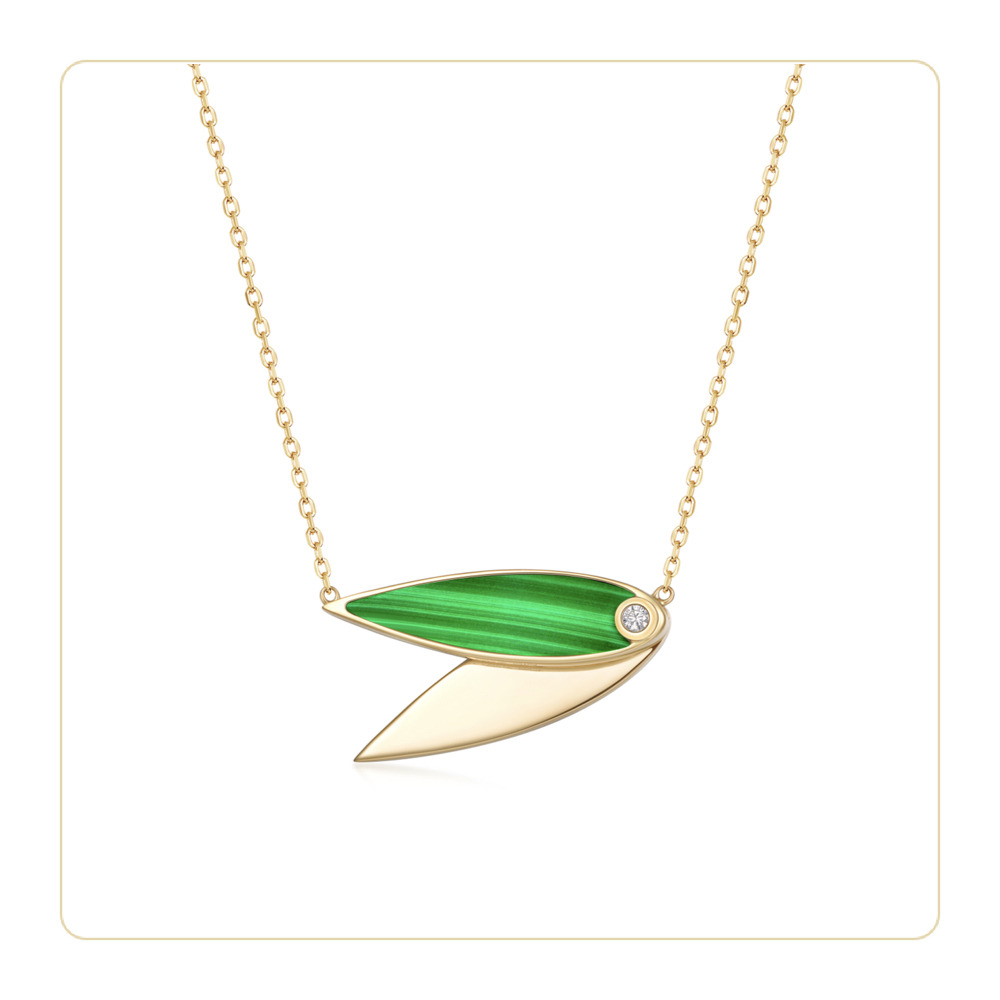 Or 18 Carats, Diamant, Malachit.Les feuilles de bambou peuvent s’ouvrir.Quatre façons de porter