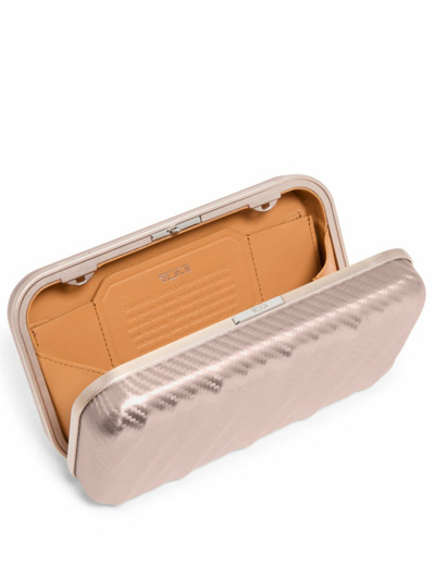 Description : Cette minaudière en aluminium, inspirée des lignes fluides des bagages rigides emblématiques de , combine fonctionnalité et élégance. Parfaite pour toute occasion, elle peut être portée en bandoulière ou en pochette grâce à ses deux options de bretelles amovibles, l'une en cuir et l'autre en chaîne. Le design met en avant une fermeture à cadre avec un loquet, des poches intérieures pour l'organisation, et le système Tracer® pour plus de sécurité.