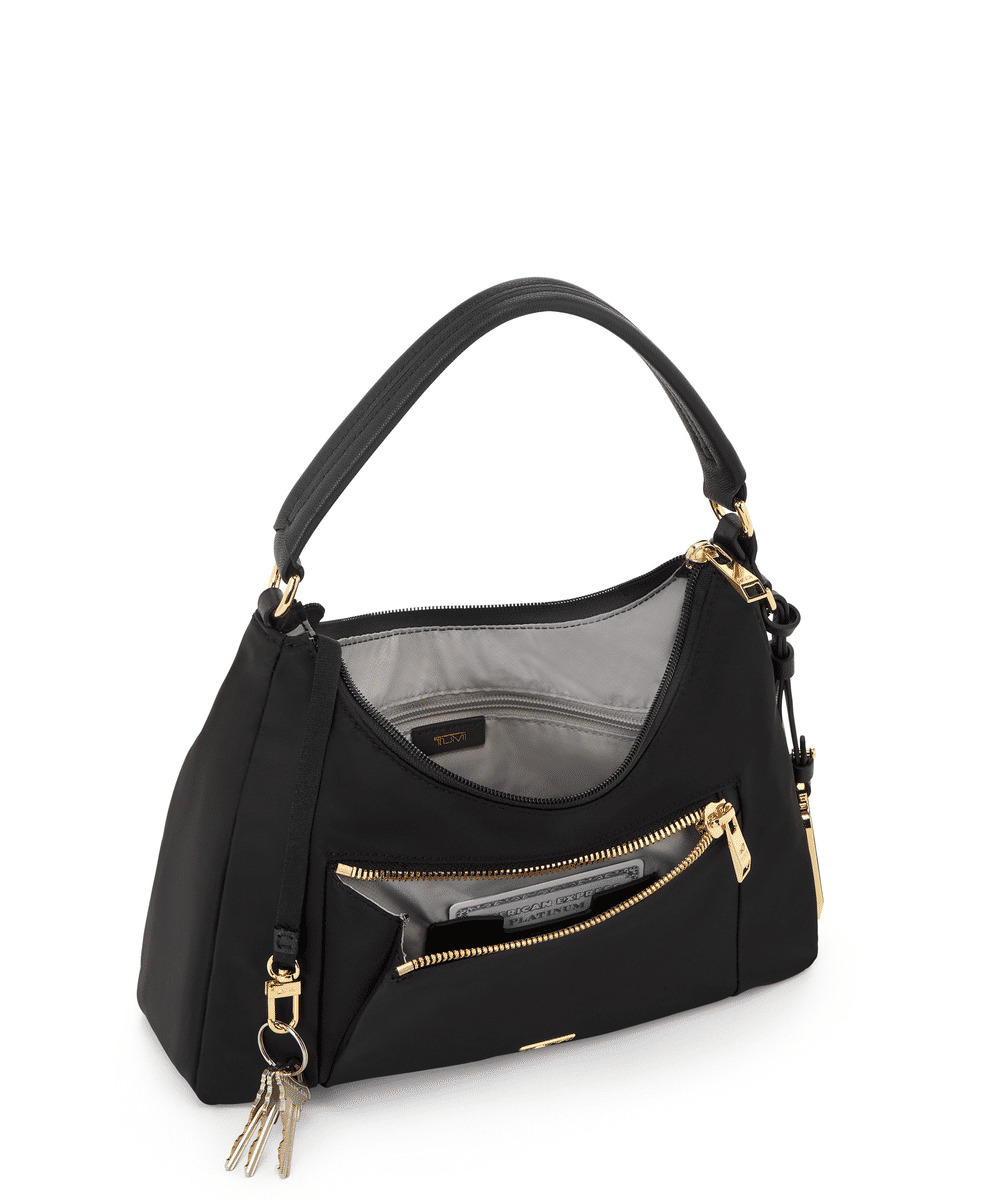Description : Ce sac hobo léger offre une silhouette élégante et polyvalente, parfaite pour une utilisation de jour ou de nuit. Il dispose d'une sangle amovible et réglable, permettant de le porter en crossbody ou sur l'épaule. L’intérieur comprend des poches organisées, un Tracer® et un porte-clés.