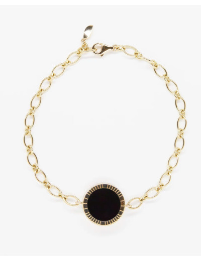 La composition du bijoux allie une Agathe Noire et une chaîne en or jaune 18 carats de 18 cm avec une maille ovale.